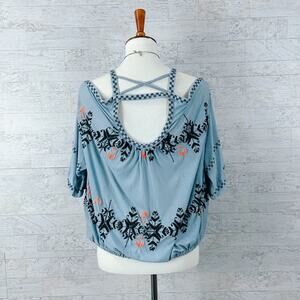 Free People New World Jersey blue cold shoulder embroidered peasant top