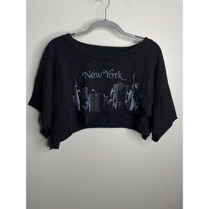 Free People New York Vintage Souls Destination Extreme Crop Top Tee Shirt Size L