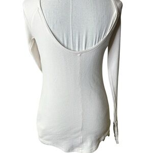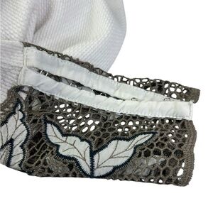 Like new Fitted thermal top with detailed cuff and curved hem. Cuff is embellished with Bali inspired embroidery.