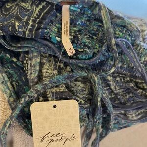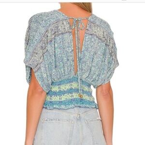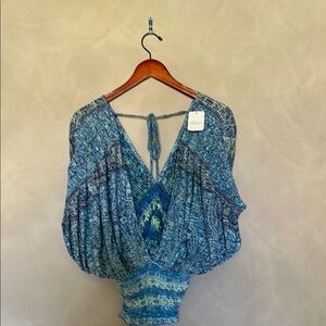 This Free People blouse V neck and smock on shoulders and bottom of top. 60% cotton 40 % modal. NWT. Non smoking home