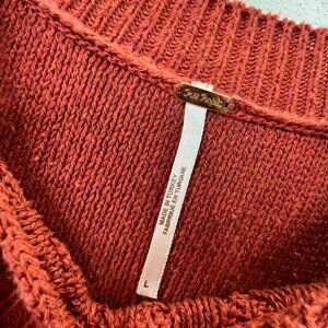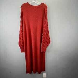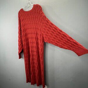 Free People Nicole Sweater Dress L Terracotta Burnt Orange Midi Cable Knit Boho