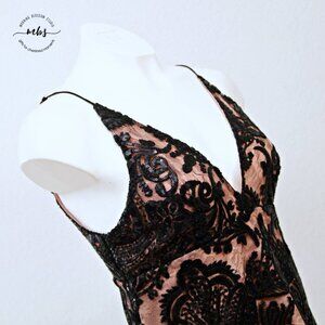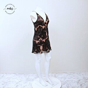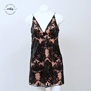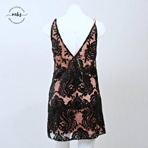 Free People Night Shimmers Lace Sequin Sleeveless Mini Dress Black Tan Women 4