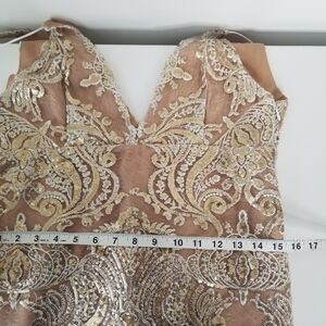 Gently used Free People Night Shimmers Mini Dress in a size small. Color is Ivory with beige lining.