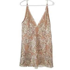 Free People Night Shimmers Mini Dress Lace Sparkly Size S Ivory/Beige Neutral