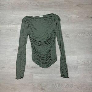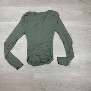 Free People Night We Met Long Sleeve Top Womens Small Green Ribbed Ruched