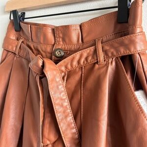 Free People, Nightfall Pants, Vegan Faux Leather, Cognac Pants, Paperbag Waist, Size 4, NWT, Vegan Leather Trousers, Fall Pants, Feminine Trousers, Trendy Trousers, Fall Style, Boho Luxe, Vegan Fashion, High Waist Pants.