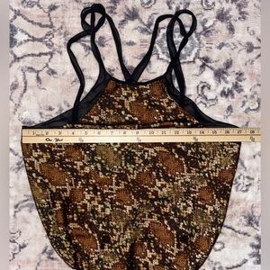 Free People Nights Out Bodysuit NWOT Snakeskin Print Black Brown Size Small