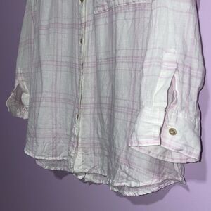 Free People No Limits Linen Button Up Women M White Lavender Plaid Beachy Boho