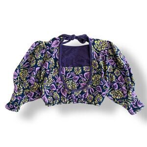 -Free People No Ordinary Black Floral Reversible Top Womens Size S Purple Black