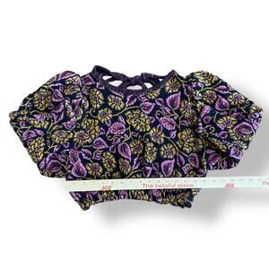 Free People No Ordinary Black Floral Reversible Top Womens Size S Purple Black