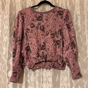 Free People No Ordinary Floral Jacquard Knit Puff Sleeves Top