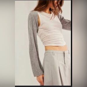 Free People Noelle cropped gray long sleeve Cashmere Shrug Size small brand new