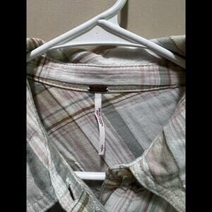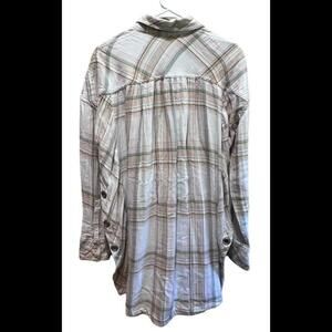 Free People Nordic Day Plaid Gauze Oversized Button Front Shirt Ivory Small READ