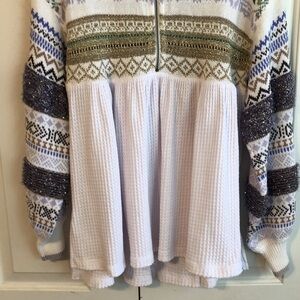 Free People fair isle Nordic metallic thermal knit sweater size XS. The approx measurements are armpit to armpit is 19 inches and the length from shoulder to hem is 27 inches. It is in great condition.