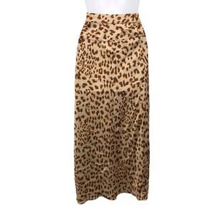 Free People Normani Bias Midi Skirt 0 Leopard Print Satin High Waist Cream Brown