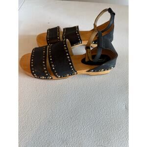 Free People North Shore Black Ankle Strap Leather Sandals EU38 US 8 Wooden Heel, great condition, ships fast