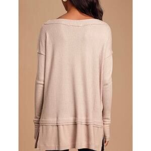 Free People North Shore Thermal Waffle Knit Long Sleeve In Beige Size Medium