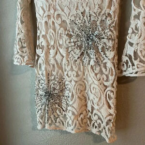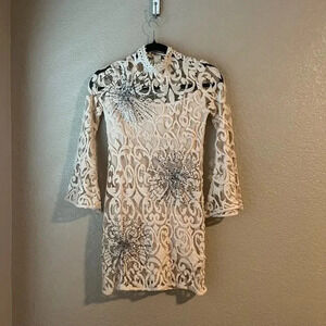 Free People North Star Dress Sparkly Sequin Bell Sleeve Lace Boho 70s 0