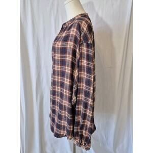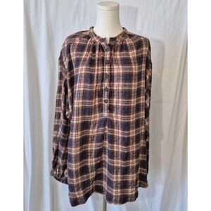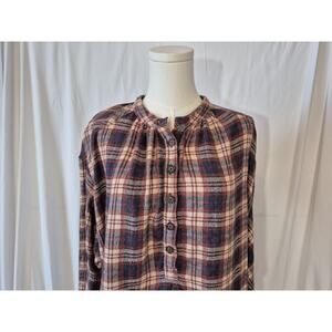 Free People Northern Bound Flannel Plaid Blue Red Pullover Tunic Top L