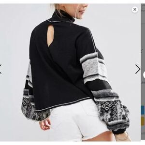 Free People Northern Lights Embroidered Sweater Black Thermal Small