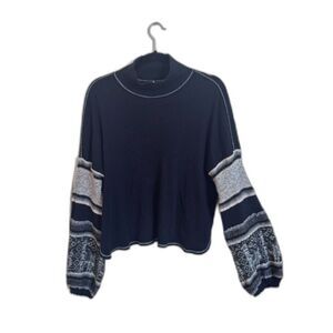 Free People Northern Lights Embroidered Sweater. A beautiful black thermal top with sweater arms and mock neck. Size small. Pullover with side slits. Relaxed fit.