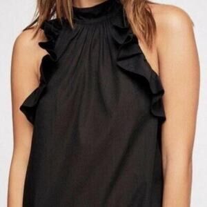 Free People Not So Sweet Mini Dress Halter Apron Ruffle Trim Low Back Black XS