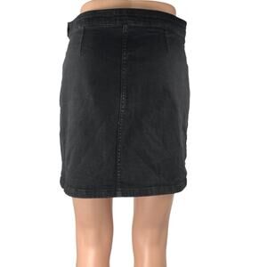 Free People Notched Black Asymmetric Side Button Mini Wrap Denim Jeans Skirt 8