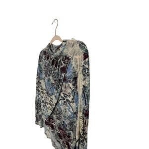Free People Nouveau Printed Top Women's Casual Lace High Low Linen Western Boho