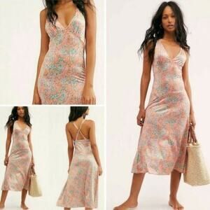 Add a pop of color to your wardrobe with this stunning Free People Nowhere To Be Silky Retro Dress. This dress features a beautiful pink hue and a silky satin fabric type that gives it a luxurious feel. It has a sleeveless design with a V-neckline, making it perfect for travel, parties, and casual outings.