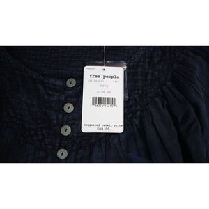 Free People OB1064031 Women's Sz XS Navy Blue Raglan Sleeve Button Up Top $88