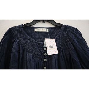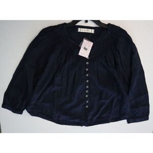 Free People OB1064031 Women's Sz XS Navy Blue Raglan Sleeve Button Up Top
