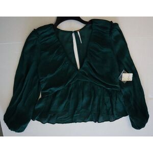 Free People OB1388568 Women's Sz S Garden Gem Green Daia Ruched Peplum Top