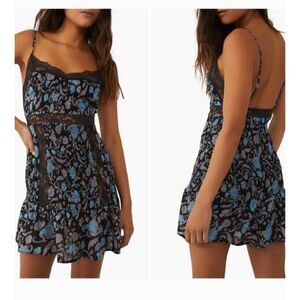 Free People OB1549094 Women Sz S Black Last Night Mini Sleeveless Slip Dress