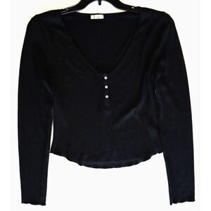 Free People OB1619283 Women's Sz S Black Keep it Basic Long Sleeve Henley Top