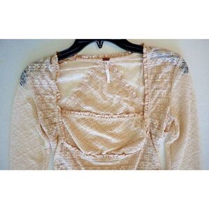 Free People OB1656955 Women's Sz S Cream L/S Lace My Party Top Blouse