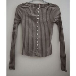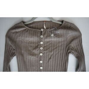 Free People OB2149766 Women's Sz S Fallen Rock/Taupe Tilly Ribbed Knit L/S Top