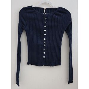 Free People OB2149766 Women's Sz XS Navy Blue Tilly Ribbed Knit L/S Top