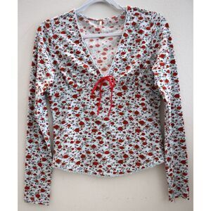 Free People OB2173453 Women Sz S Pale Blue Floral Abundance Long-Sleeve Top