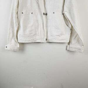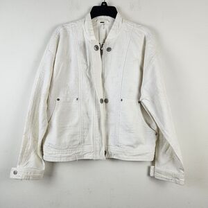 Free People OB407552 White Distressed Tennis Denim Jacket M Oversized Boho