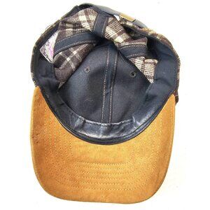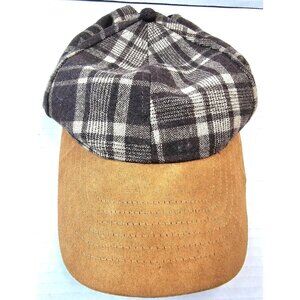 This Free People newsboy cap, crafted with a blend of wool and polyester, evokes a timeless vintage charm. Its plaid design is complemented by a brown suede-like brim, offering a touch of classic elegance. The cap's versatile style and comfortable fit make it a stylish accessory for various occasions.