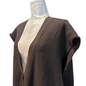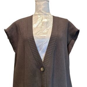 Free People Oakleigh Vest Womens Sz Large Charcoal Gray V Neck Raw Hem Oversize