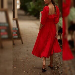 Free People Oasis Midi Dress M 8 Women Cotton Red 3/4 Sleeve Smocked NWT 45028