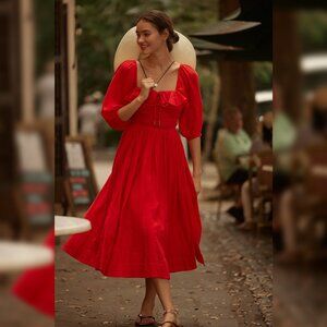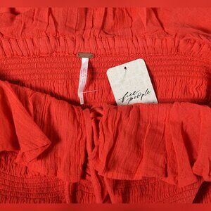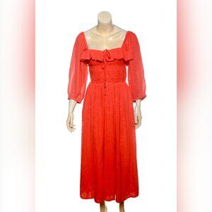 Free People Oasis Midi Dress XS 2 Women Cotton Red 3/4 Sleeve Smocked NWT 45036