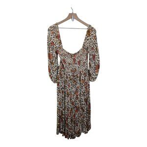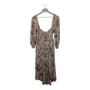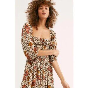 Free People | Oasis Midi Printed Dress | Small | Animal Print Ruffle Smocked