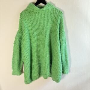 Free People Oasis Oversized Tunic Sweater Mock Neck Fuzzy Chunky Green Energy SM