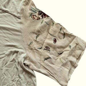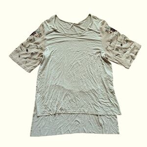Free People Oatmeal Heather Embroidered Floral Sleeves Peasant Tunic Top M