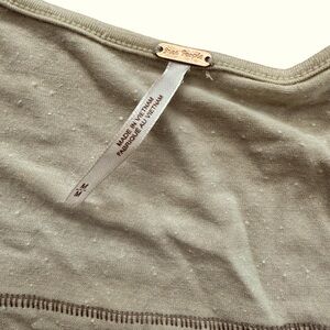 Free People Oatmeal Heather Embroidered Floral Sleeves Peasant Tunic Top