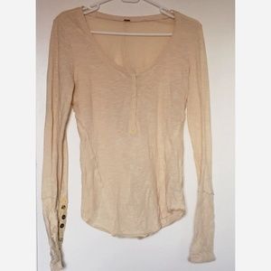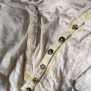 ➳ free people↟ ➳ size small ➳ worn once soft and fitted tee with button-up lace sleeves. perfect on it's own or for layering! ➸ let me know if you're interested in haggling or bundling!