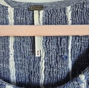 Free People, Obi Posey Smocked Chambray Blue Striped Tassel Tunic Top, Size Medium