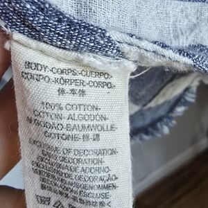 Free People, Obi Posey Smocked Chambray Blue Striped Tassel Top Size Medium